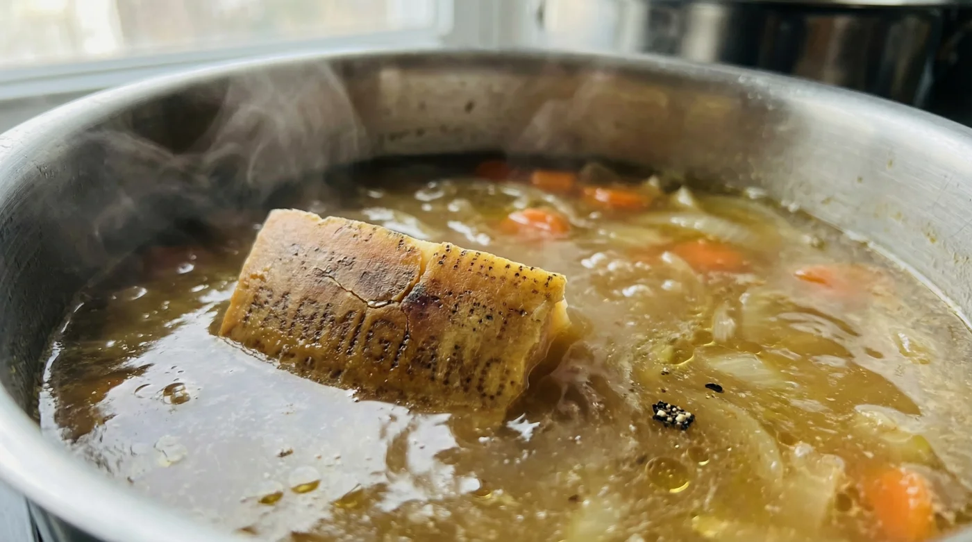 Wenn du dieses scheinbar wertlose Stück in kochendes Wasser gibst, beginnt ein stetiger Austausch. Die Rinde gibt ihr über Monate gereiftes Glutamat ab. Es ist, als würde ein stummer Zeuge der Reifung plötzlich seine ganze Geschichte erzählen. Du brauchst keinen in Folie gewickelten Brühwürfel mehr, der nach Hefeextrakt und künstlichem Sellerie schmeckt.