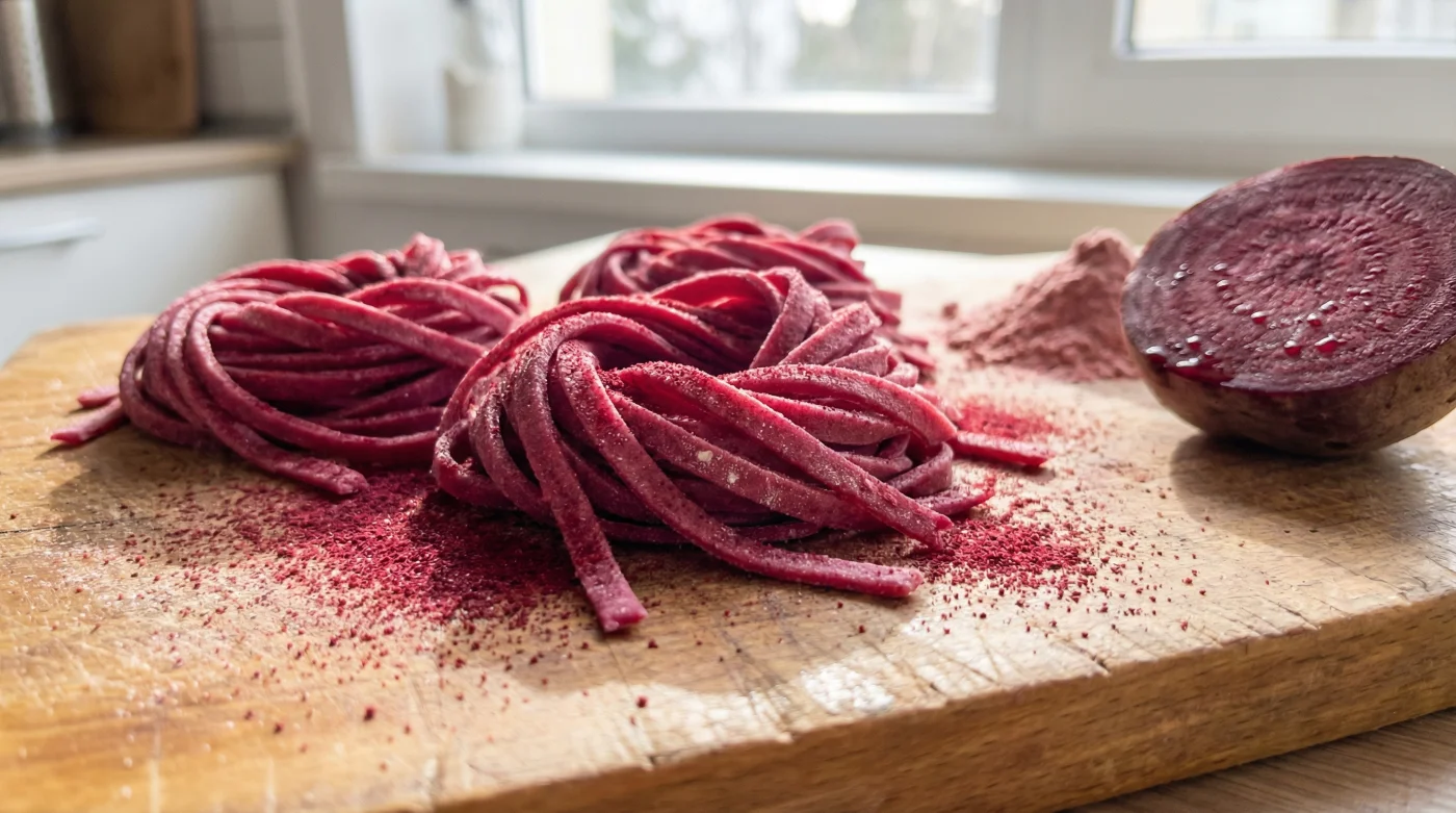| Rote-Bete-Pulver | Erhält die exakte Hydratation und die perfekte Glutenstruktur deines Teigs. | Idealer Biss (Al Dente) kombiniert mit einer brillanten, teuer wirkenden Optik. |