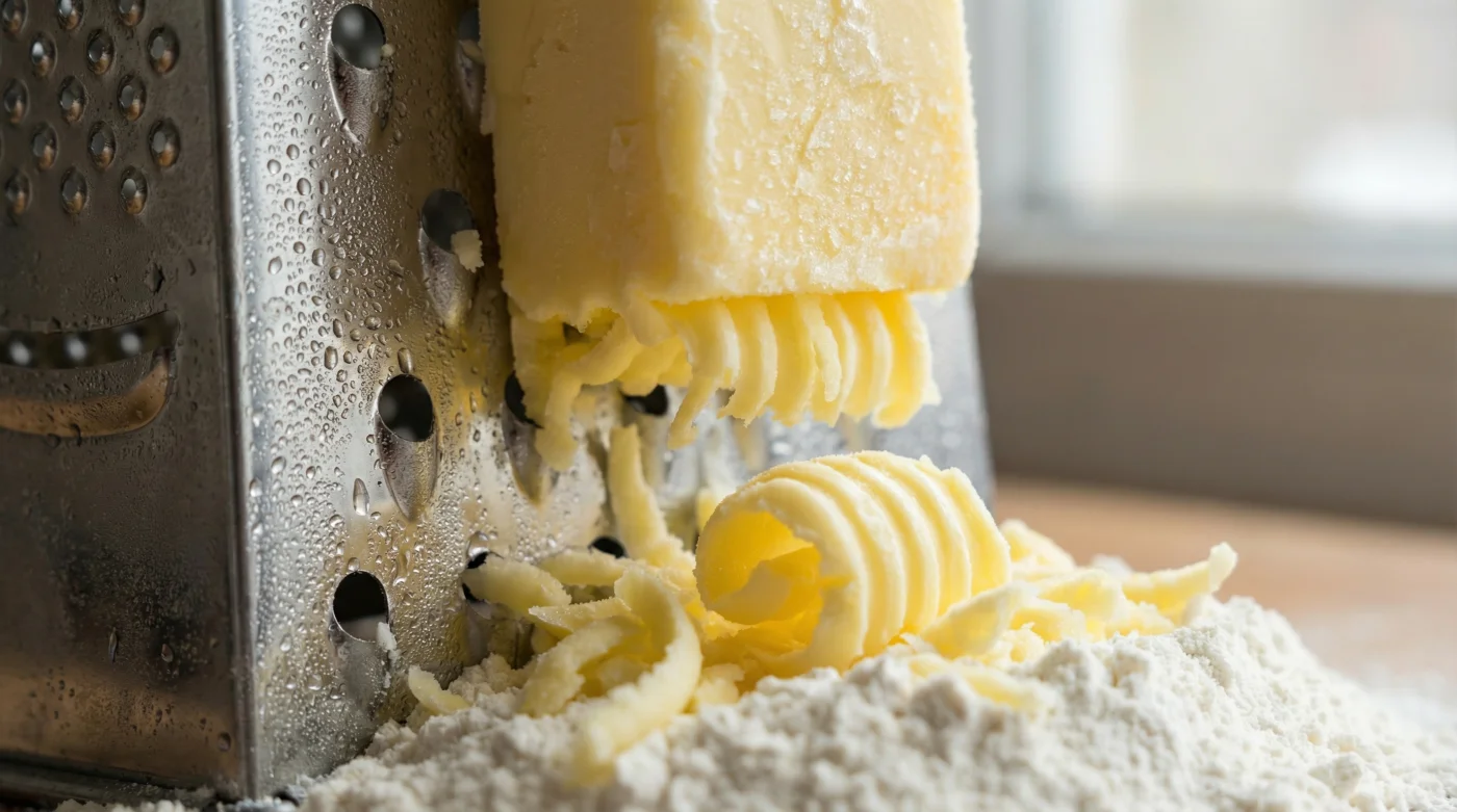 Was wäre, wenn du die Butter beim Kneten gar nicht erst berühren müsstest? Ein winziger Perspektivenwechsel reicht aus, um aus einem massiven Mehlklumpen ein echtes Meisterwerk zu formen. Wenn du zu einer simplen Vierkantreibe greifst und den Fettanteil in eisigen Spänen unterhebst, veränderst du die gesamte physikalische Struktur deines Gebäcks. Plötzlich arbeitest du nicht mehr mühsam gegen die Wärme, sondern nutzt die absolute Kälte als dein schärfstes Werkzeug in der Küche.
