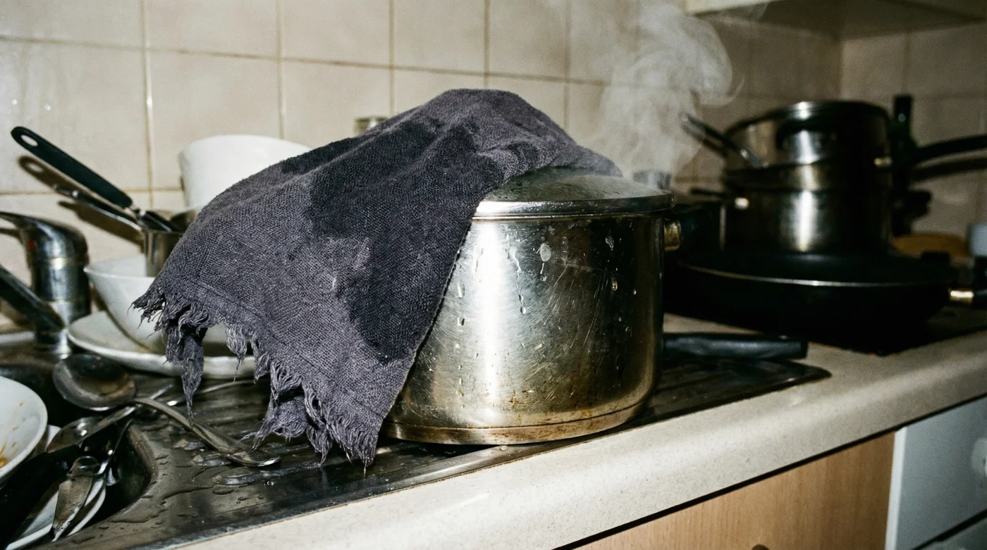 Der größte Fehler beim Kochen ist nicht das Anbrennen, sondern die Panik danach. Ein fest geschlossener Topf und ein kühler Kopf lösen durch Kondensation fast jedes Problem völlig mühelos.