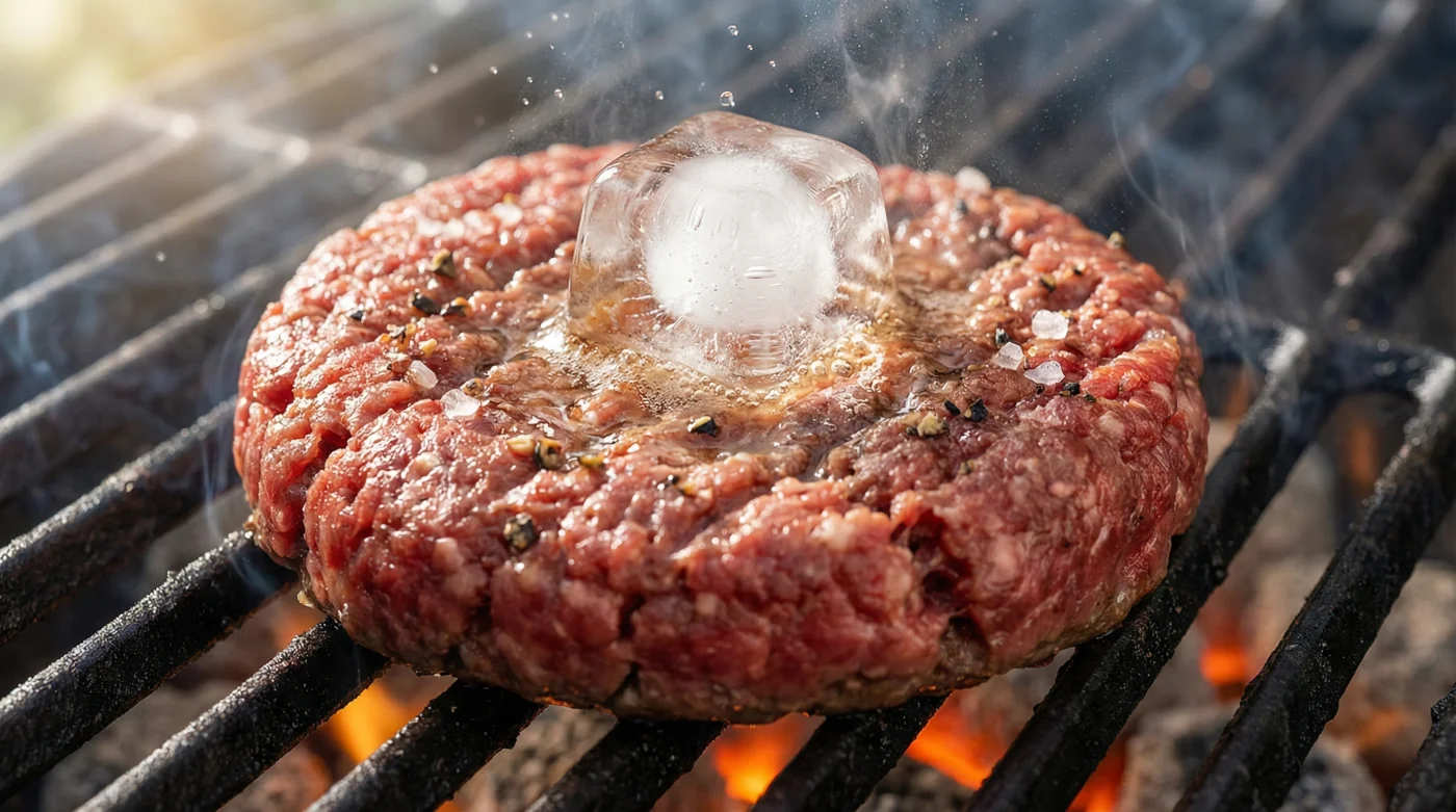 Markus, 42 Jahre alt und Betreiber einer kleinen Handwerksmetzgerei im Schwarzwald, sah jedes Wochenende, wie seine Kunden hochwertiges Rindfleisch auf ihren Grills in trockenes Sägemehl verwandelten. Irgendwann begann er, bei seinen Grillkursen kleine Eiswürfel in die rohen Pattys zu drücken. Er nannte es liebevoll die Rettungsboje für ungeduldige Griller. Innerhalb weniger Wochen verbreitete sich diese simple Präparationstechnik in der Region. Die Leute kamen nicht mehr nur wegen des Fleisches, sondern weil dieser kurze Kniff ihnen die Angst nahm, teure Zutaten zu ruinieren.
