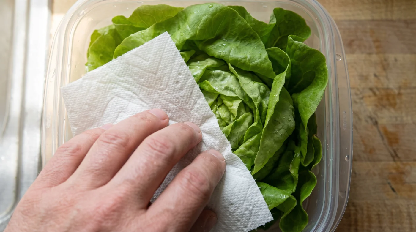 Ein einzelnes, trockenes Stück Zellstoff ändert diese Physik radikal. Es erfordert kein teures Vakuumiersystem und keinen komplizierten Frischhalte-Hack aus dem Internet. Es ist ein simpler, fast schon beiläufiger Handgriff, der den Verfall stoppt, bevor die Kühlschranktür überhaupt zufällt.