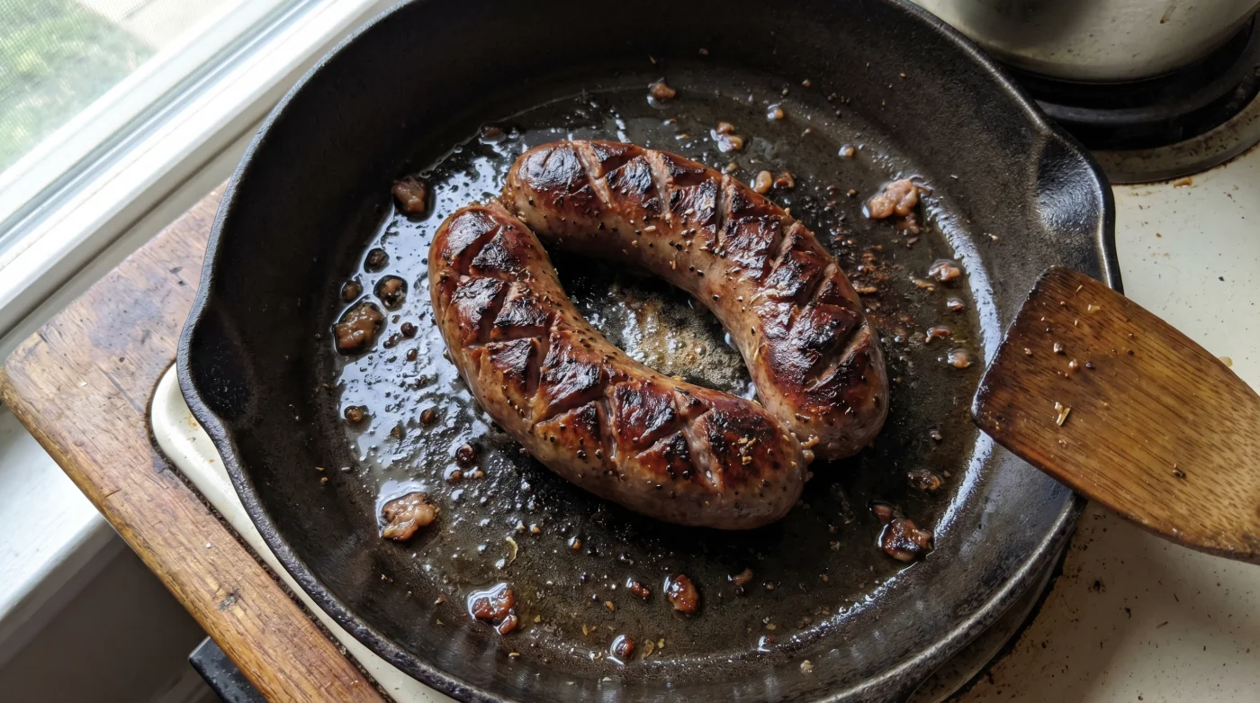 Warum braten wir Bratwürste normalerweise als fest verschlossene Röhren? Wir betrachten die Wurst traditionell als ein geschlossenes System. Das Fleisch kocht sanft im eigenen Fettgewebe, die Pelle wirkt als schützender, aber auch blockierender Isolator. Aber genau diese intakte Hülle limitiert die Hitze. Sie minimiert die direkte Kontaktfläche zwischen dem weichen Fleisch und dem heißen Eisen der Pfanne.