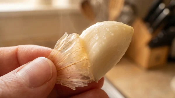 - Gib rohen Knoblauch ins heiße Wasser für extrem leichtes Schälen