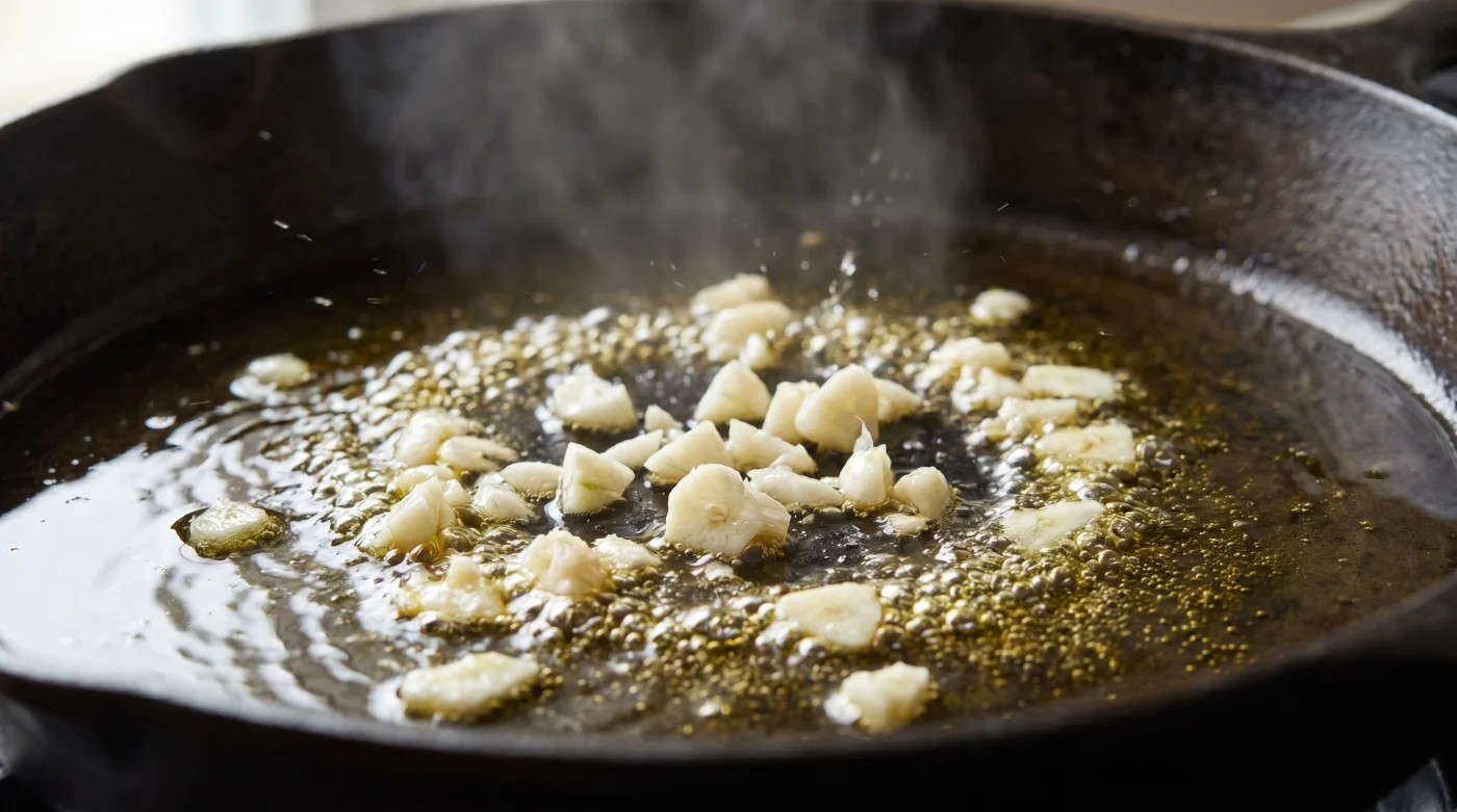 - Die Notbremse: Wenn der Knoblauch droht zu braun zu werden, wirf sofort einen winzigen Schluck kaltes Wasser in die Pfanne. Das stoppt die Röstung schlagartig.