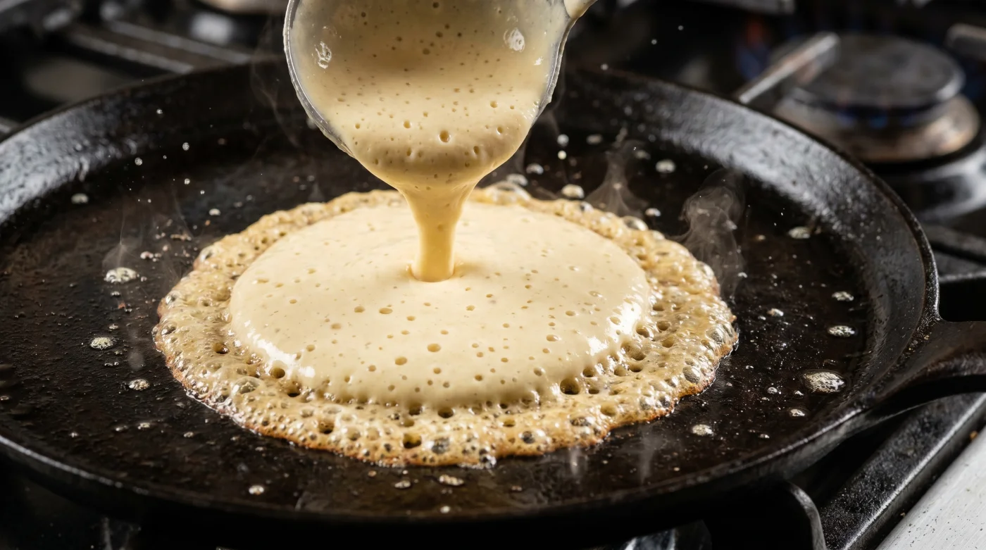 Für den absoluten Textur-Perfektionisten: Nutze den Restaurant-Trick schlechthin für die vollendete Leichtigkeit. Nach der zwanzigminütigen Ruhephase hebst du einen winzigen Schluck stark kohlensäurehaltiges Mineralwasser unter die Masse. Die kleinen Bläschen verfangen sich im entspannten Proteinnetzwerk und sorgen für Ränder, die beim Ausbacken in der heißen Pfanne beinahe soufflieren.